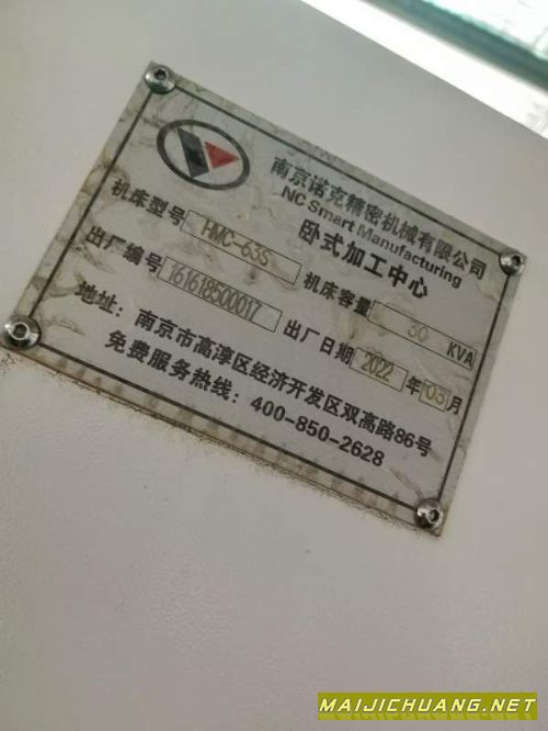 南京威诺克630卧式加工中心,BT50主轴,带中心出水,.